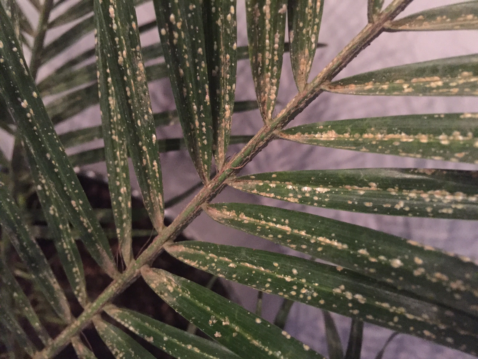 Meine Palme hat einige Blätter, die weisse/braune Punkte haben (siehe Bild).