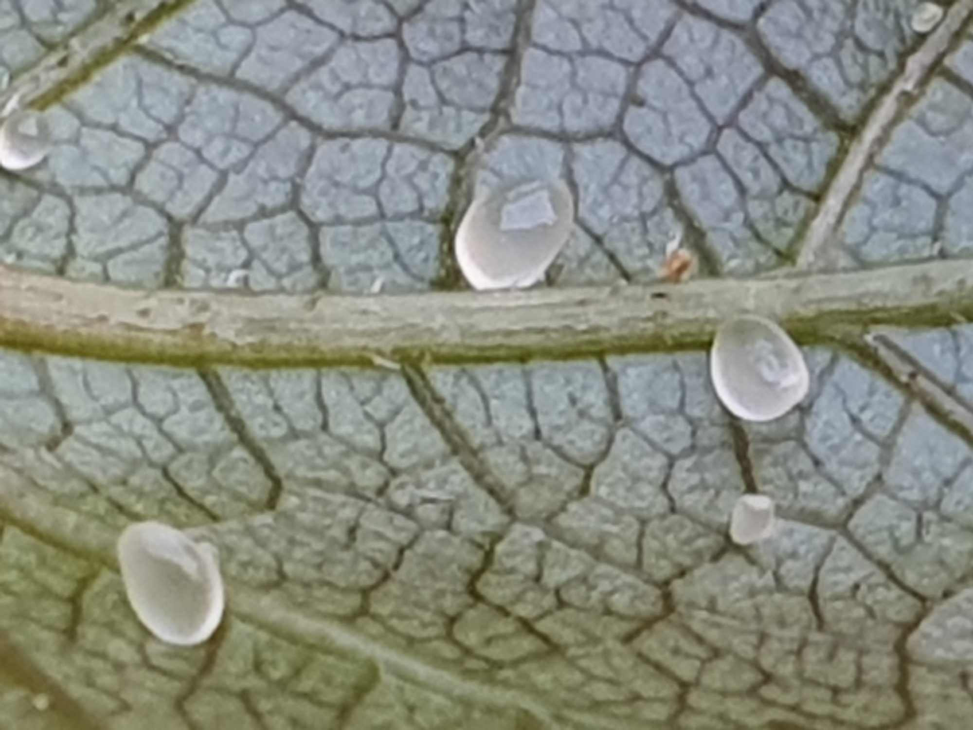 Weiße Kügelchen auf Blattunterseite Veitschi
