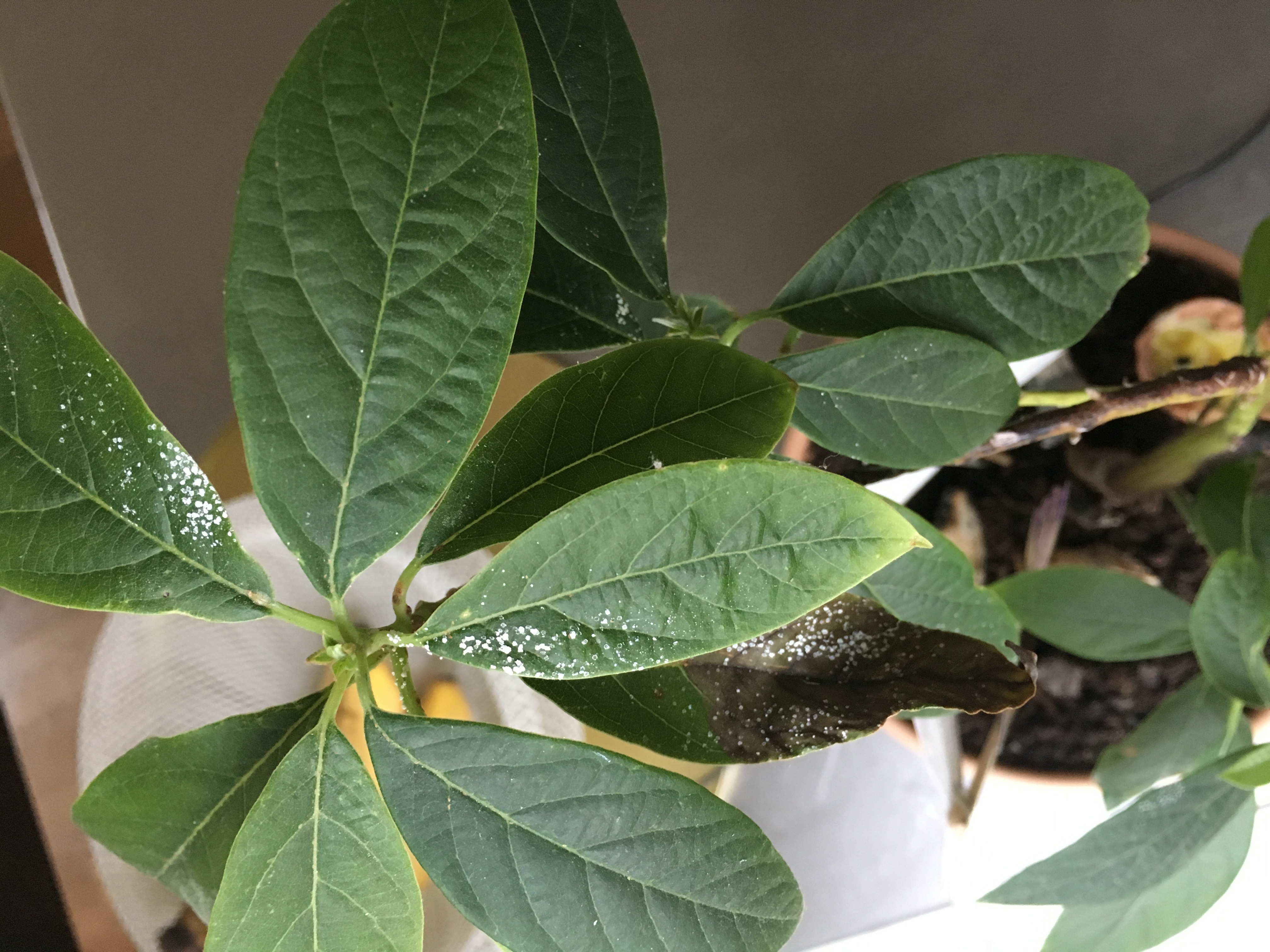 Weiße Punkte auf der Avocadopflanze, keine Tiere