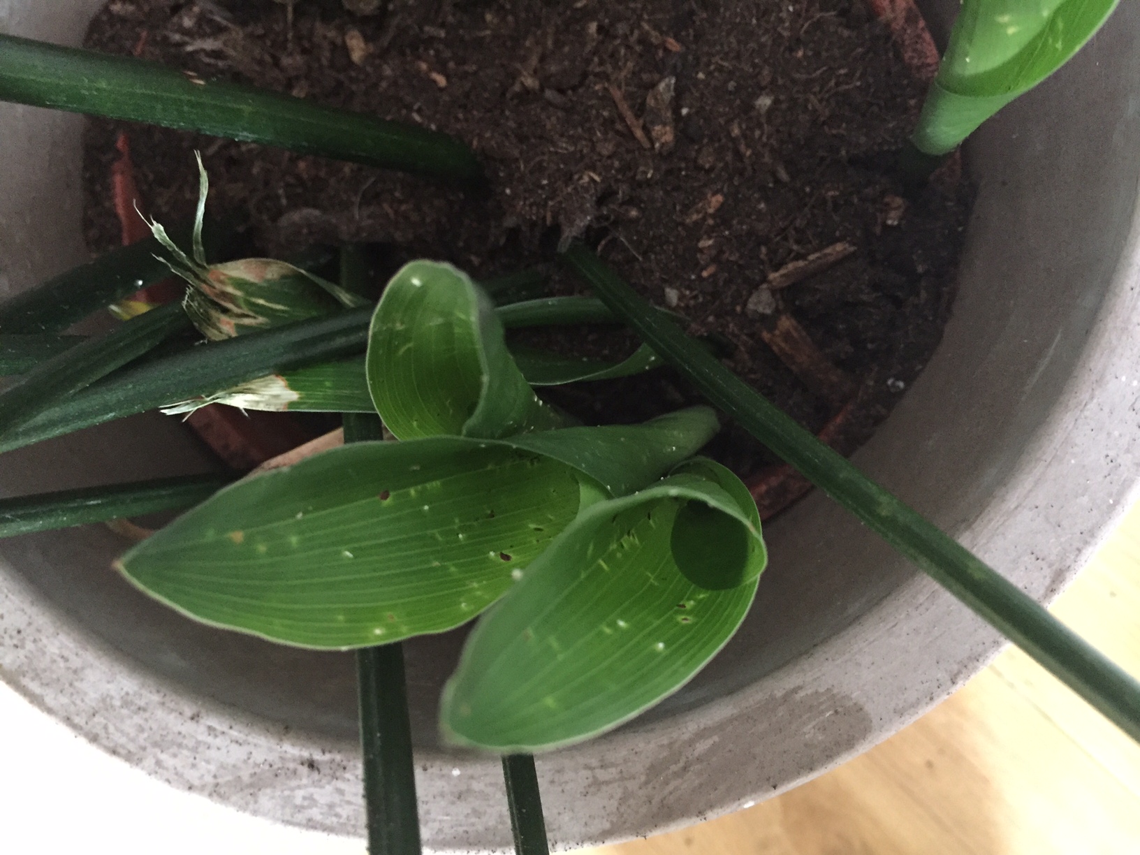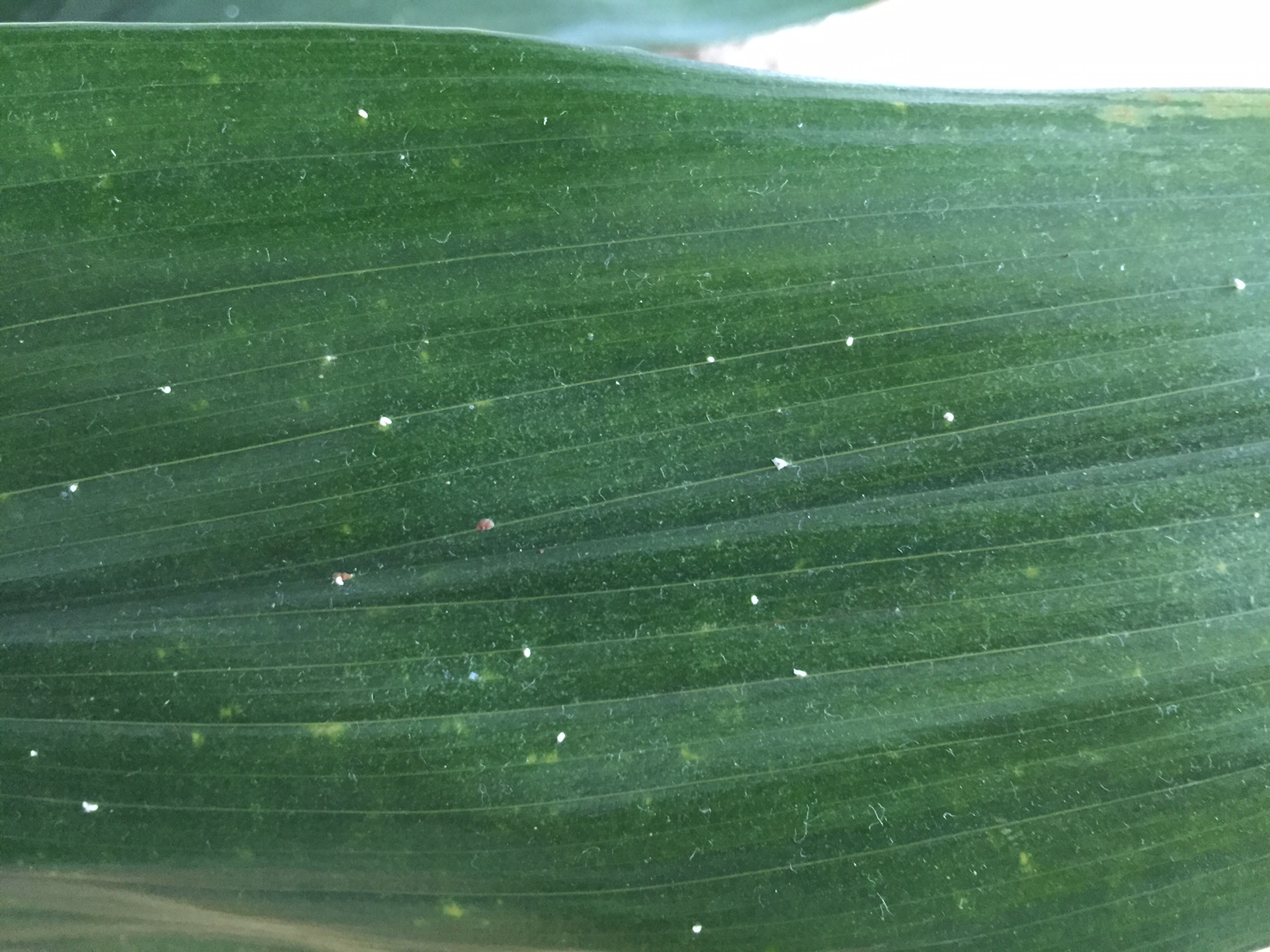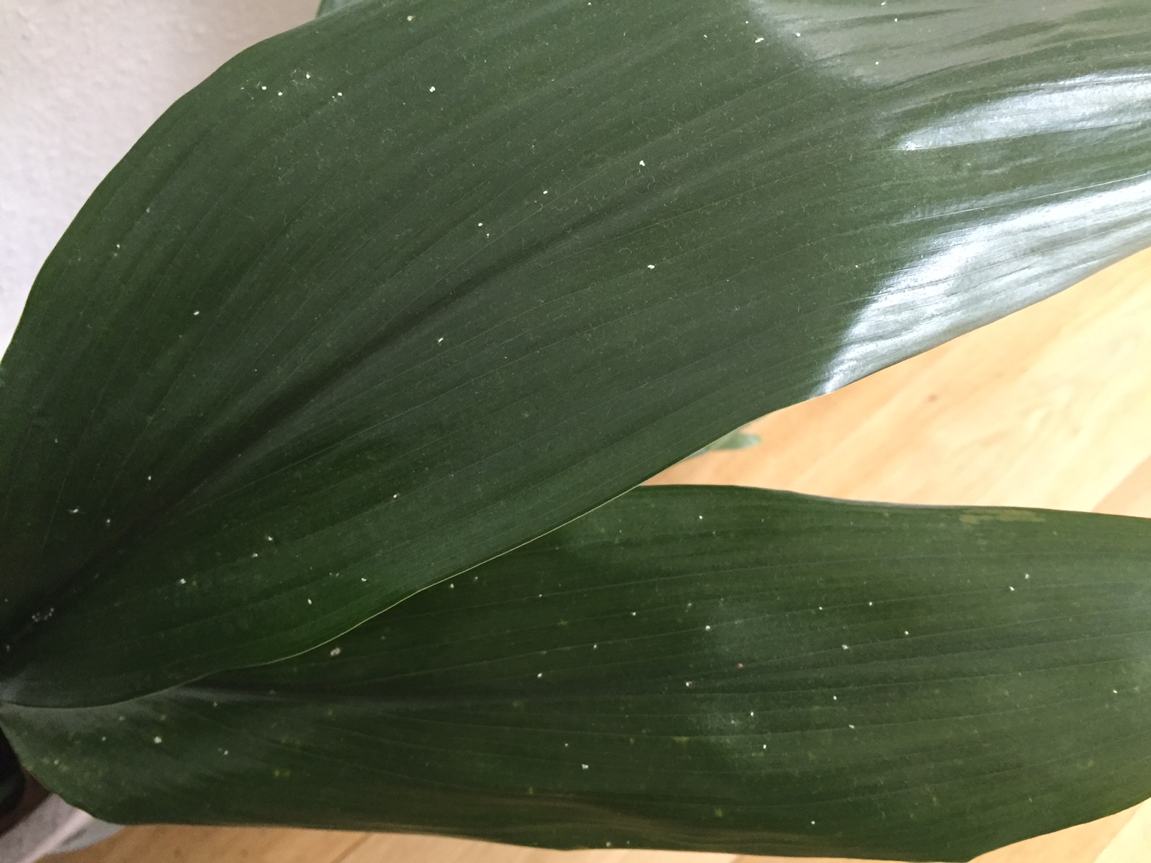 meine Zimmerpflanze hat viele kleine weiße Punkte - vor allem auf der Blattoberseite, vereinzelt aber auch auf der Blattunterseite und am Stiel.