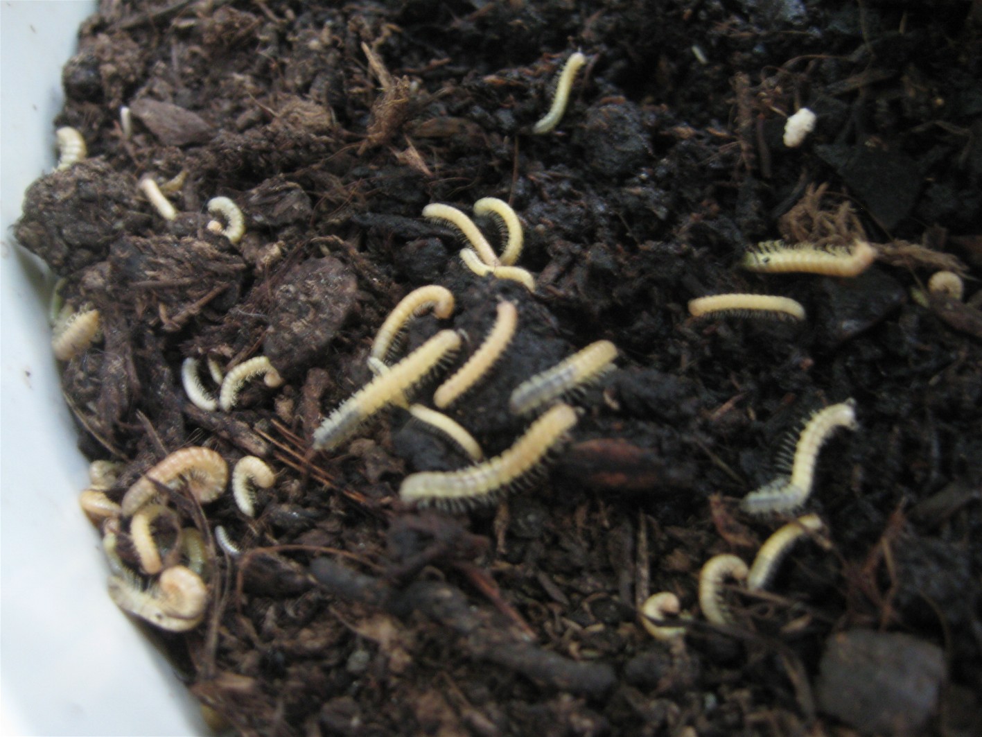 Ich hab auch hier im Forum schon ein bisschen gesucht, aber keine weißen Würmchen mit Füßen entdeckt. Es sind keine Trauermückenlarven (da ja Beine dran sind und viel zu groß...) und nachdem alle tot sind, ist der erste Schreck auch vorüber. Trotzdem würde ich gerne wissen, was diese Würmchenleichen sind, damit ich, falls schädlich, vorbeugen kann.