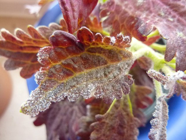 Auf einigen meiner Buntnesseln ist so ein weißer staubiger Belag, der mehr wird.