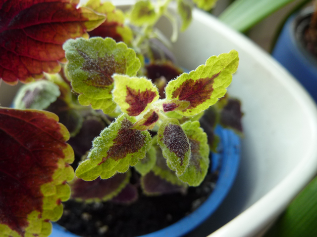 Auf einigen meiner Buntnesseln ist so ein weißer staubiger Belag, der mehr wird.