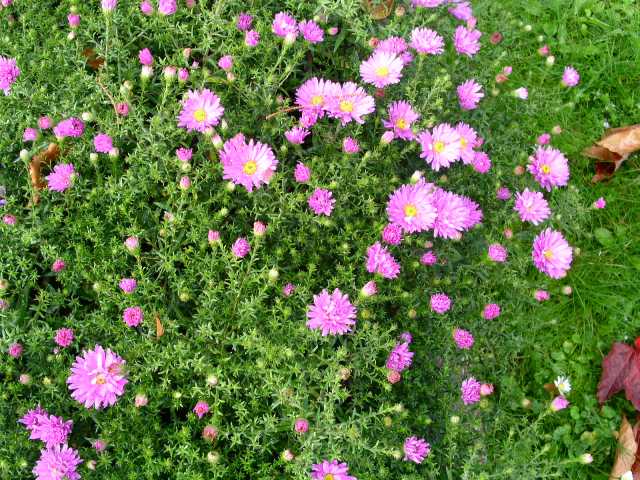 Sie blühen in lila, haben viele blüten, und stehen jetzt gerade in voller blüte. Sie wachsen in einem art busch, also nicht einzeln, so wirkt es zumindest.