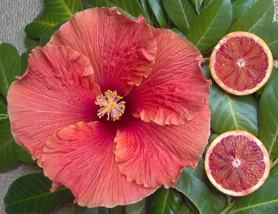Der "B"-Sämling ist ziemlich blühfreudig und produziert bis 22 cm große Blüten, die bis zu 3 Tage halten. Die Farbe der Blüten ähnelt der von Blutorangen. Diesen Sämling behalte ich auf jeden Fall, eine Sicherheitskopie gibt's davon schon...