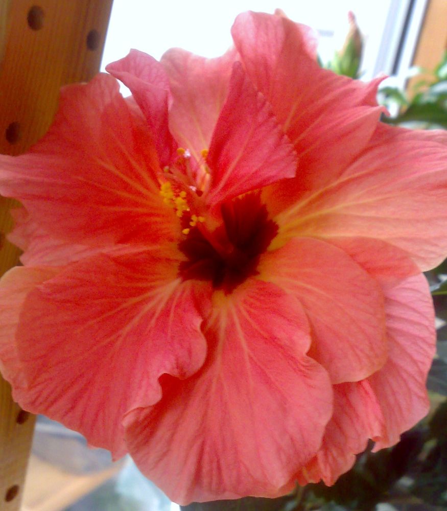Mein Hibi hat heute eine leicht merkwürdig aussehende Blüte. Normalerweise bildet sie toll gefüllte Blüten aus. Die heutige Blüte hat in der Mitte so einen länglichen Stiel mit Staubgefäßen und zwei Blütenblättern dran. Diese Blütenblätterumhüllen mehr oder weniger drei Stempel. Alle bisherigen Blüten meines Hibis hatten gelegentlich mal Staubgefäße, aber bislang noch nie Stempel. Habe so zum Spaß mal Bienchen gespielt . Mal sehen, ob das was wird.
