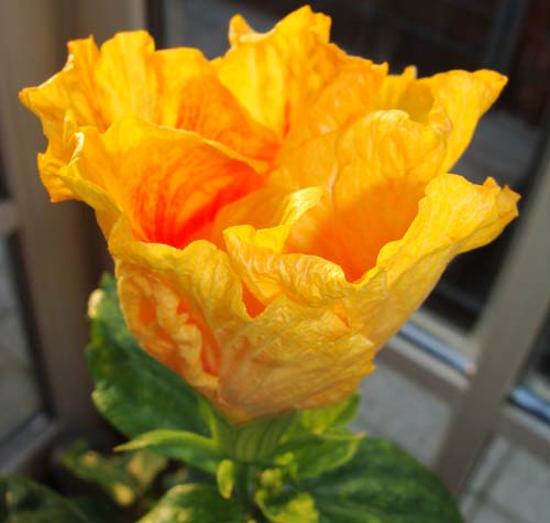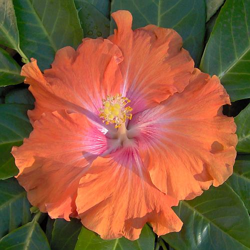 Die Blüten des "A"-Sämlings werden bis 17 cm groß, er ist sehr blühfreudig und zeigt (gelegentlich) schwache Anzeichen der erwähnten Musterung. Leider lässt sich diese Züchtung nicht so leicht über Stecklinge vermehren, deshalb habe ich mir ein Exemplar veredelt.