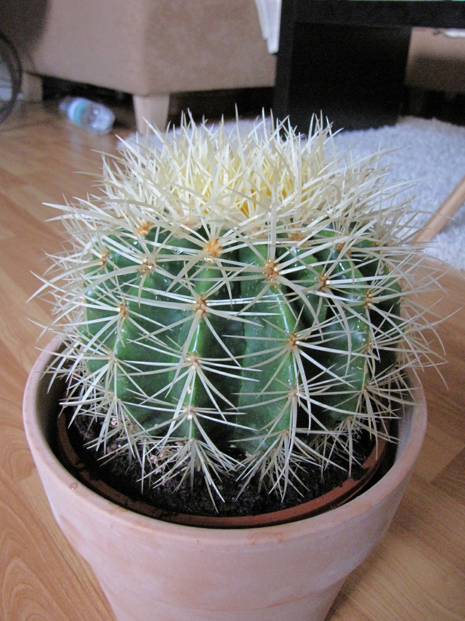 aber ich würde sagen...dein neuer Schützling ist ein Goldkugelkaktus (Echinocactus grusonii)...auch Schwiegermutterstuhl genannt