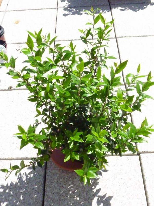 habe mir eine Kübelpflanze gekauft, bei der das Schild nur "Myrte Busch" besagt. Eine sogenannte "Brautmyrte", die man auch als Zimmerpflanze halten kann, ist es definitiv nicht. Vom Wuchsbild würde man aufgrund der Blattgröße zuerst an einen zierlichen Liguster denken. Welche Myrte könnte das denn sein?