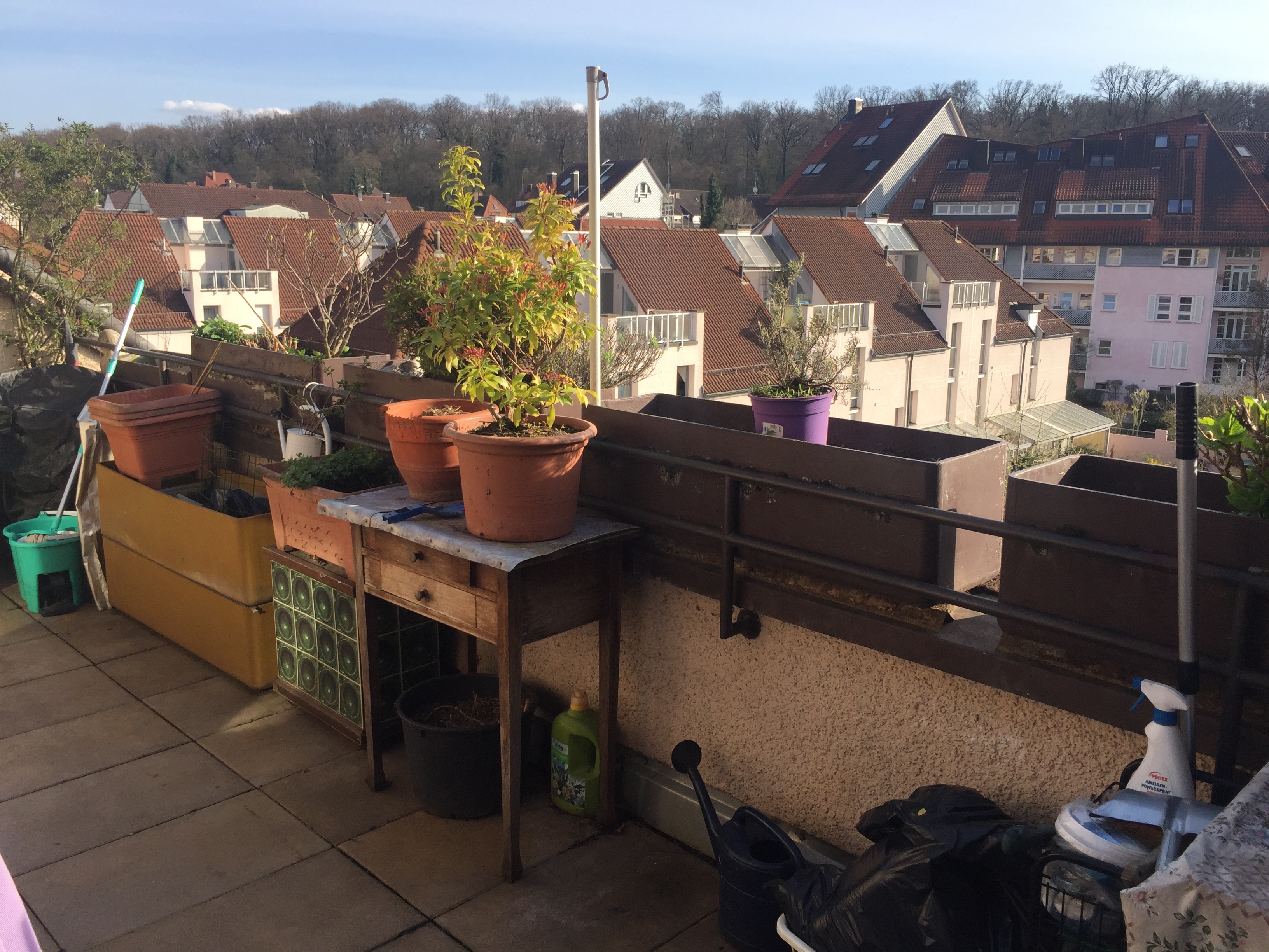 Wie ihr auf den Fotos seht, benötige ich winterharte Planzen, die die neugierigen Blicke der Nachbarin abhalten. Es ist Vollsonne bis abends. Die zwei großen Behälter werden jetzt gestrichen und auch hochgestellt. Die Maße sind 30x30 und zwischen 120 und 100 cm lang. Ich hab keine Lust mehr, jedes Jahr neu zu beflanzen - ich muss alles in 4. Stock hochschleppen und im Winter ist der Sichtschutz weg, so dass ich Nachmittags schon die Rollos runterlassen muss.
