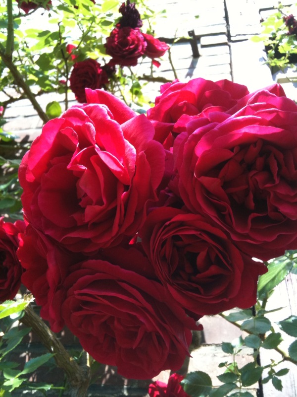 Blüht gefüllt und sehr lange in rot - duftet sehr sehr gut, blüht immer wieder bis zum Frost.