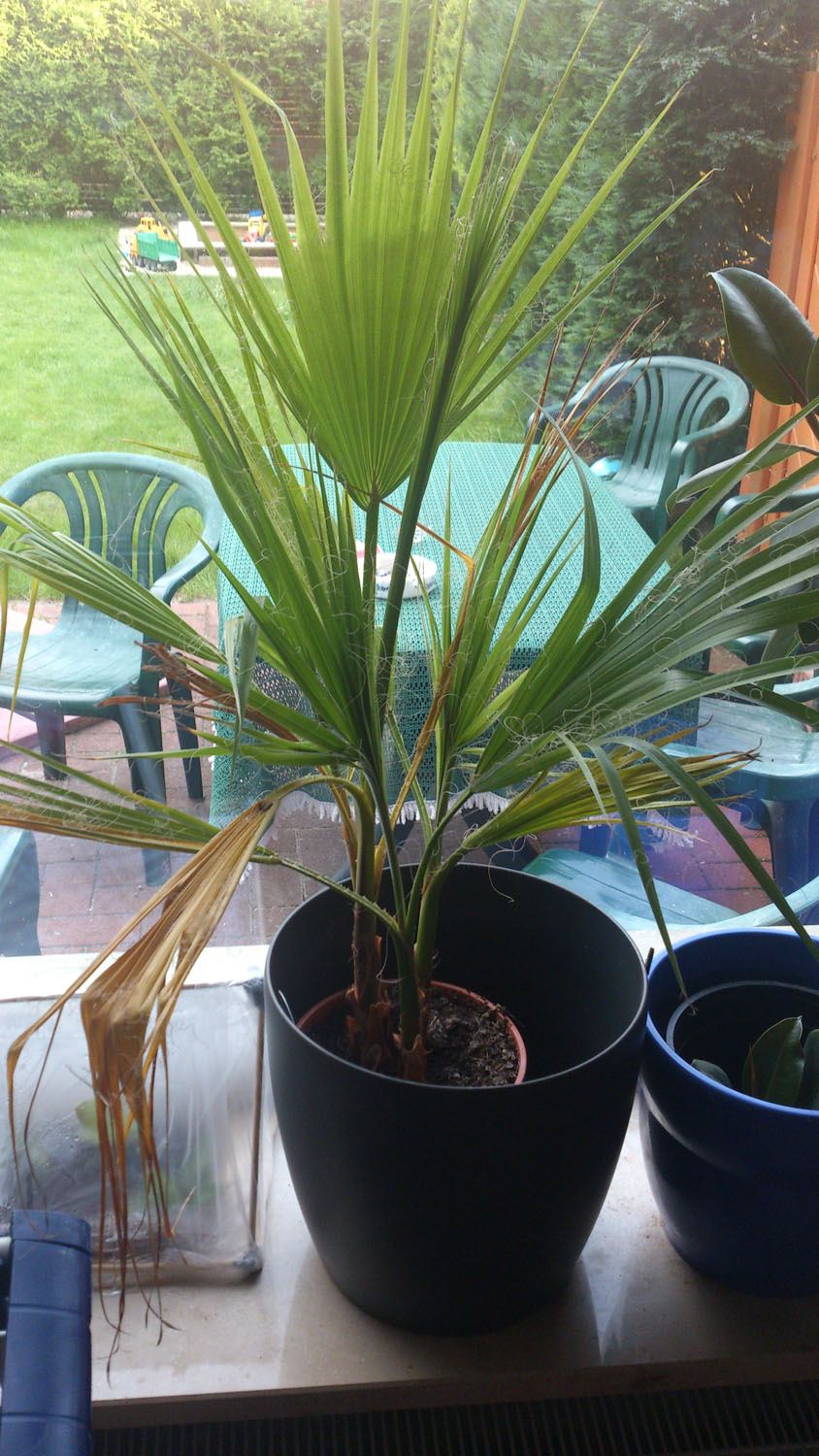 Und dann noch da oben die Washington Robusta ist des glaub ich, ist doch normal das die wedel vertrocknen? muss ich die bis ende dran lassen oder kann man die vorher abschneiden, weil ist ja nicht wirklich hübsch ! Und 4 stück in einem Topf, ob das so ok ist, habe sie so gekauft, tips?