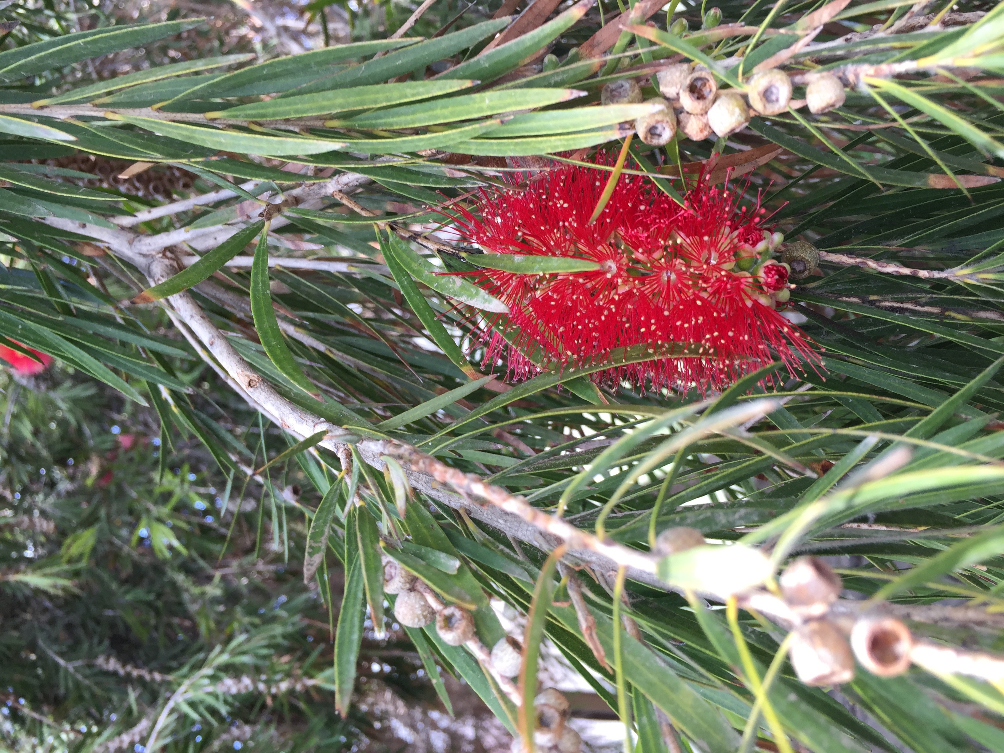 Dachte, es wäre Callistemon rigidus, bin mir aber wegen der Blattbeschaffenheit nun doch nicht mehr ganz sicher.
