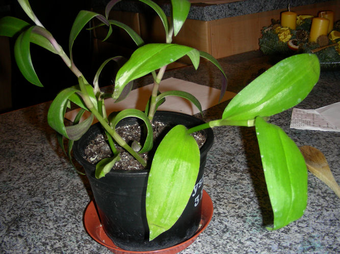 Dann habe ich zwei grüne Arten, wo die eine ganz grün ist, sie neigt zu größeren Blättern,, und die andere, hat rosa-violett angehauchte Blattunterseiten und Stengel-Abschnitte...und Blätter, die sich leicht einrollen