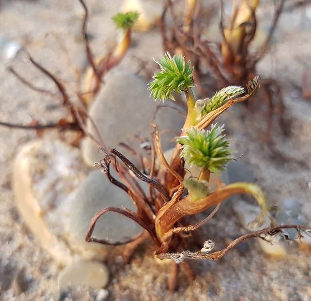 Hallo Kaniza,so jung, wie der Austrieb ist, ist es mehr Kaffeesatzlesen als Bestimmen. Ich könnte mir aber vorstellen, dass es sich um Gänsefingerkraut (Argentina anserina) handelt.https://www.google.de/search?q…=719#spf=1