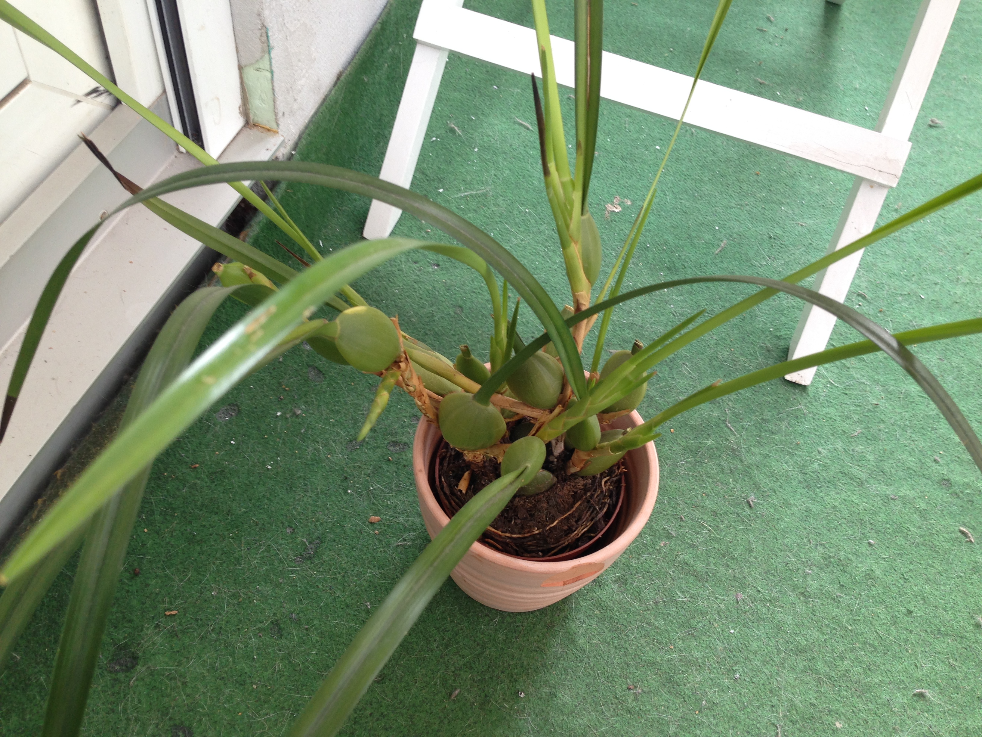 Bild 7 hatte 3 große Blattrosetten, die über die Winterruhe alle abgefallen sind, jetzt kommen viele kleine neue, die sich langsam purpur färben. Sie waren auch am Anfang komplett purpur, nachgewachsen sind dann grüne Blätter. Ich vermute, dass sie nur durch die Sonne sich purpur färben?