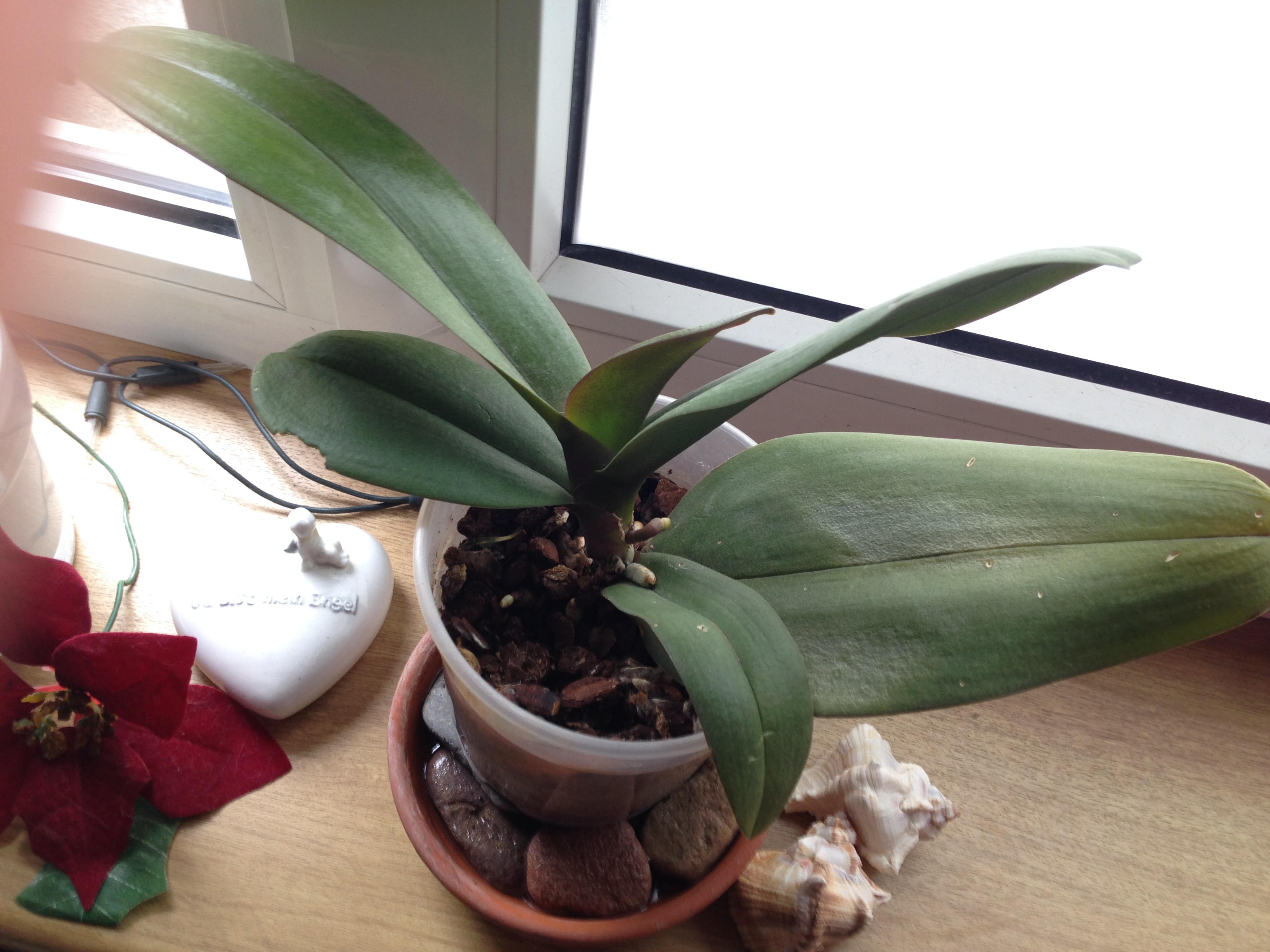 Die Phalaenopsis bekommt jetzt einen Blütenstengel, da kann ich vielleicht zu gegebener Zeit noch mal ein Bild mit Blüte einstellen.