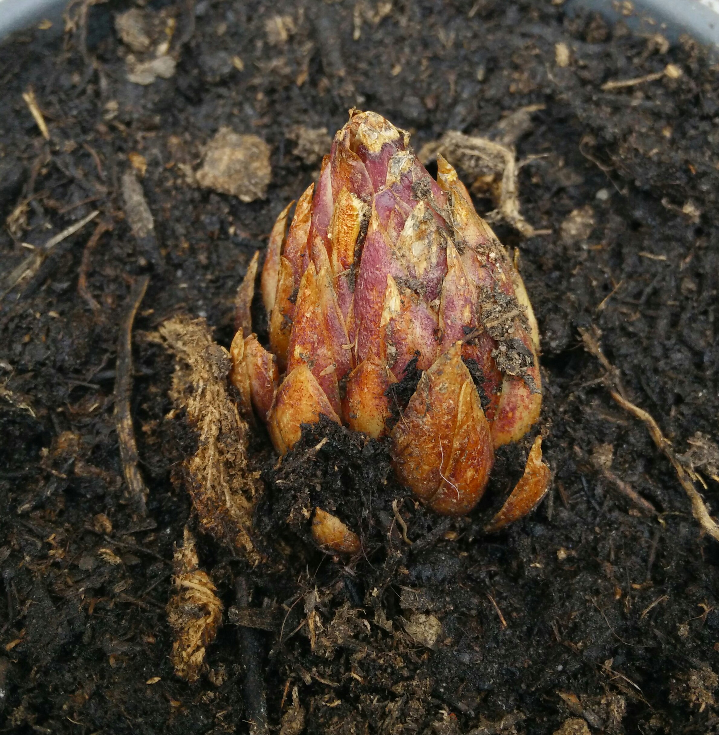 Ich habe im Wald eine artischockenähnliche Knospe mit Wurzeln gefunden. Weiß von euch jemand, was das wird? Habe es daheim eingepflanzt, aber irgendein Tier buddelt es immer wieder aus, so dass ich wahrscheinlich auf diesem Weg keine Chance habe, die Pflanze zu bestimmen.