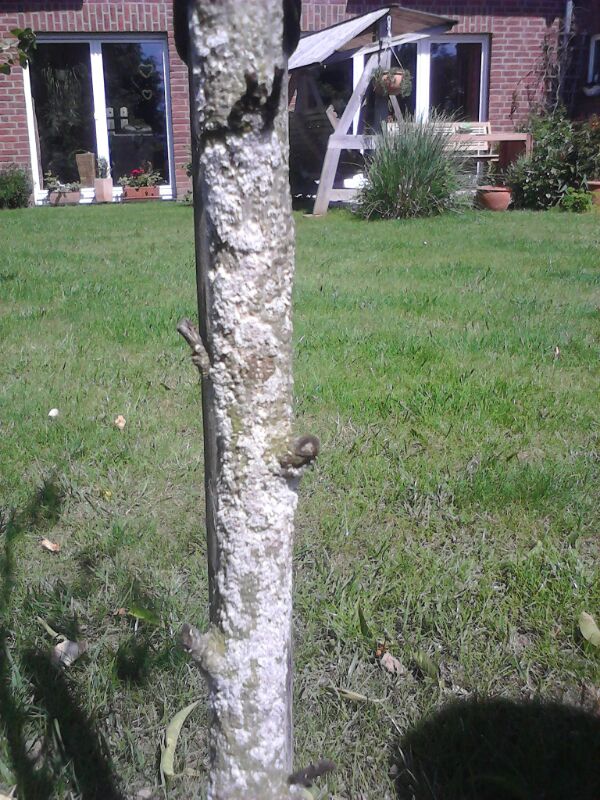 wir haben bei uns einen relativ jungen Pfirsichbaum im Garten stehen, der nun von einem Pilz oder Flechten befallen ist. Kennt bzw. erkennt jemand den Schädlich und weiß ggf. sogar noch Rat?