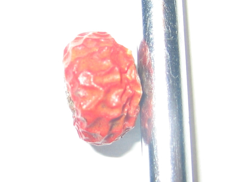 Ich würde resa30 zustimmen. Ich meine auch es gleicht einer eingetrockneten Hagebutte (der "haarige" braune Ring am Fruchtansatz). Meine eingetrockneten Hagebutten sahen sehr ähnlich aus.