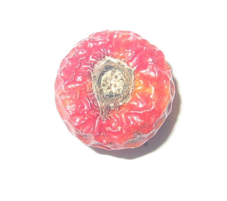 Ich würde resa30 zustimmen. Ich meine auch es gleicht einer eingetrockneten Hagebutte (der "haarige" braune Ring am Fruchtansatz). Meine eingetrockneten Hagebutten sahen sehr ähnlich aus.