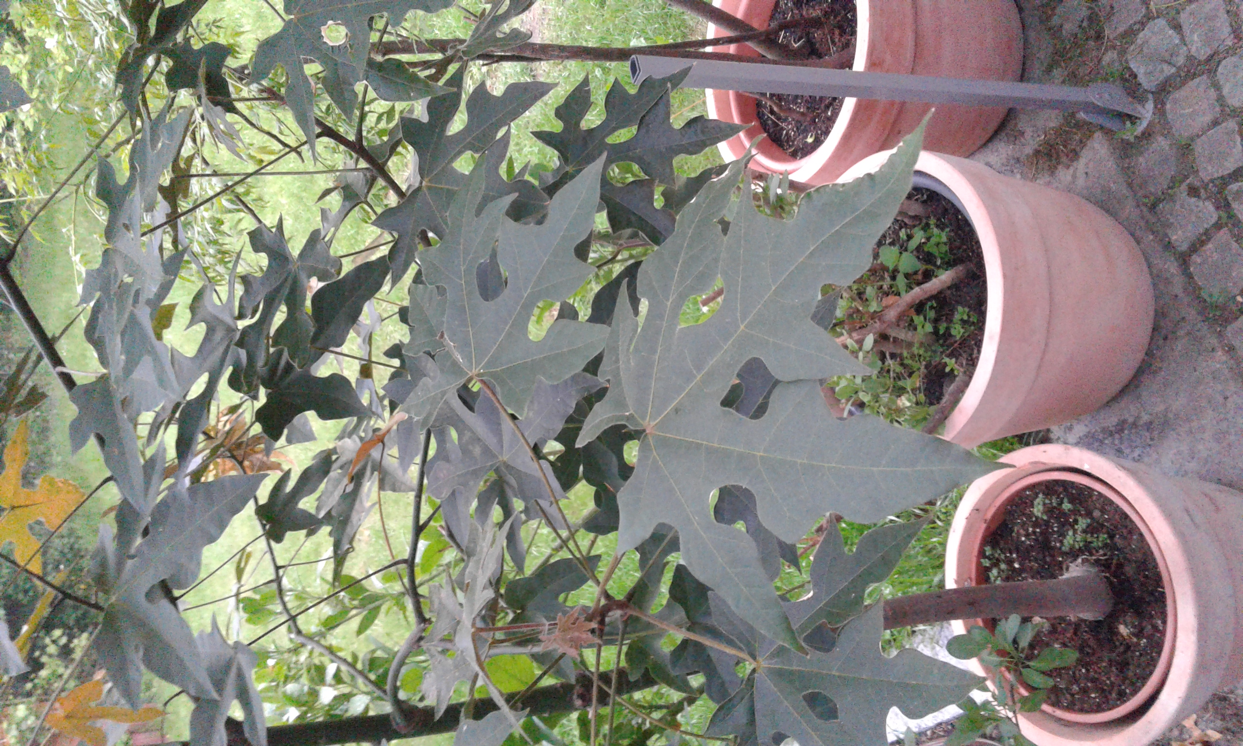 ich habe vor einigen Jahren Samen geschenkt bekommen aus denen inzwischen zwei stattliche Bäumchen geworden sind (ca. 2,50m - 3m hoch). Im Winter im Wintergarten, im Sommer draussen. Ich dachte immer es wären Brotfruchtbäume, aber das stimmt wohl nicht. Hat jemand eine Ahnung was es sein könnte?