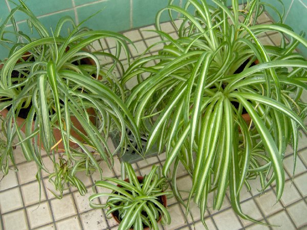 Die Grünlilie zur Linken ist die Mutter, rechts ist ein Ableger davon und