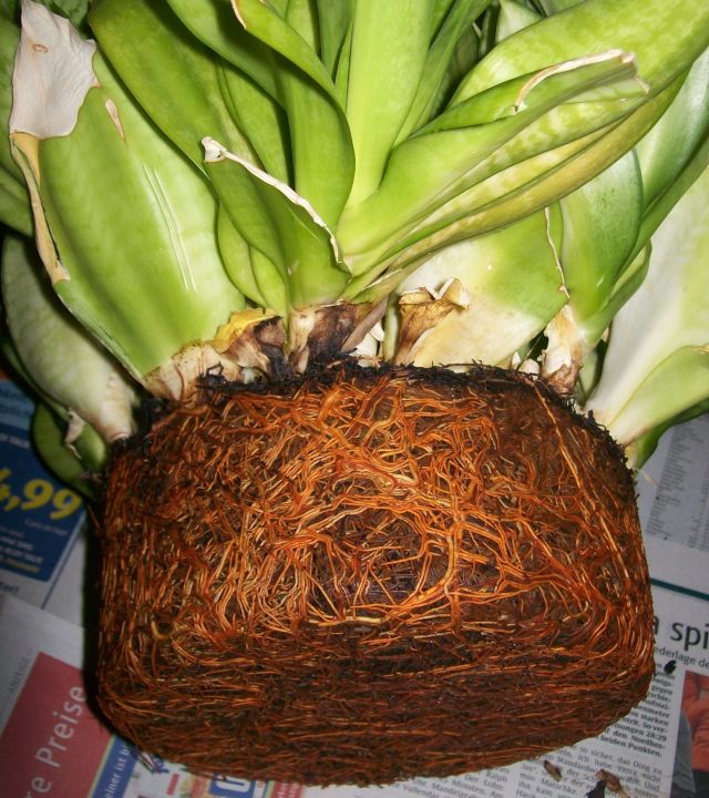 Ich hab gestern ne Sansi gerettet, was ich aber erst so richtig zu hause gesehen habe. Da das Ding schon total eingestaubt und mit Spinnweben voll war, hab ich die mal komplett raus genommen und richtig schön abgewaschen. Dabei habe ich festgestellt, das zum Großteil in der Mitte nen mickriges farbloses Blatt drin war, was stecken geblieben ist und leicht vor sich hingammelte, auch waren nicht wirklich viel Wurzeln an den einzelnen Stecklingen/Kindeln (nach mehr sah das nicht aus). Immerhin hat einer von den Kindeln nen Neuaustrieb mit dran hängen gehabt.