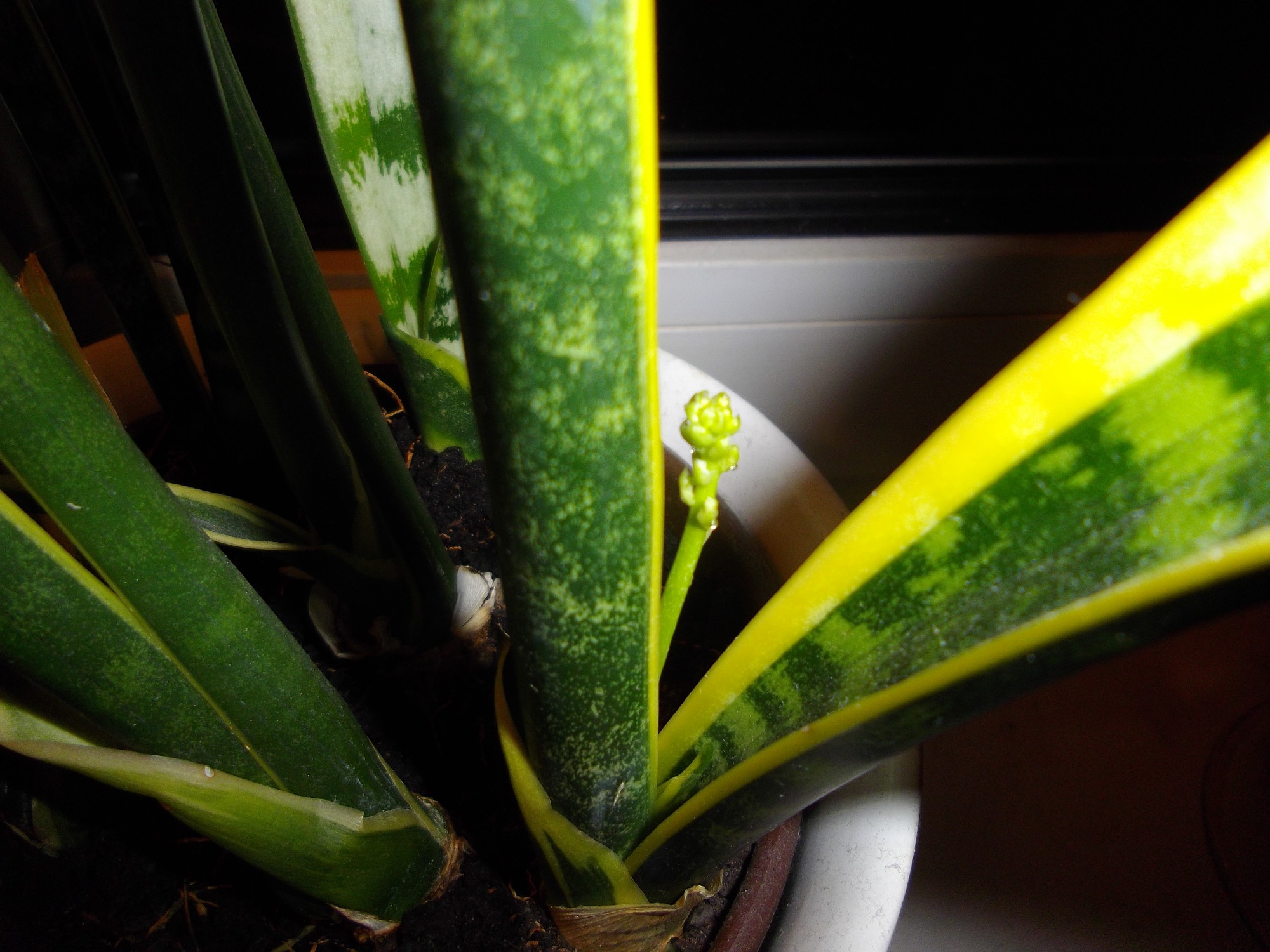 Wer hat Sansevierien? Na ich natürlich auch, sogar 2 Stück. Und bei der älteren davon habe ich heute morgen was entdeckt, was ich noch nie bei der gesehen habe - ich glaube fast, die will blühen!
