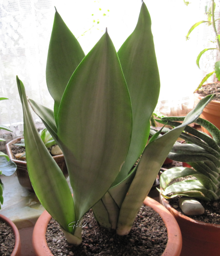 Die Sansi steht bei meiner Tochter im Zimmer auf dem Fensterbrett eines Nordfensters und ich hab sie schon sehr sehr oft vergessen zu gießen. Anscheinend ist sie darüber nicht traurig