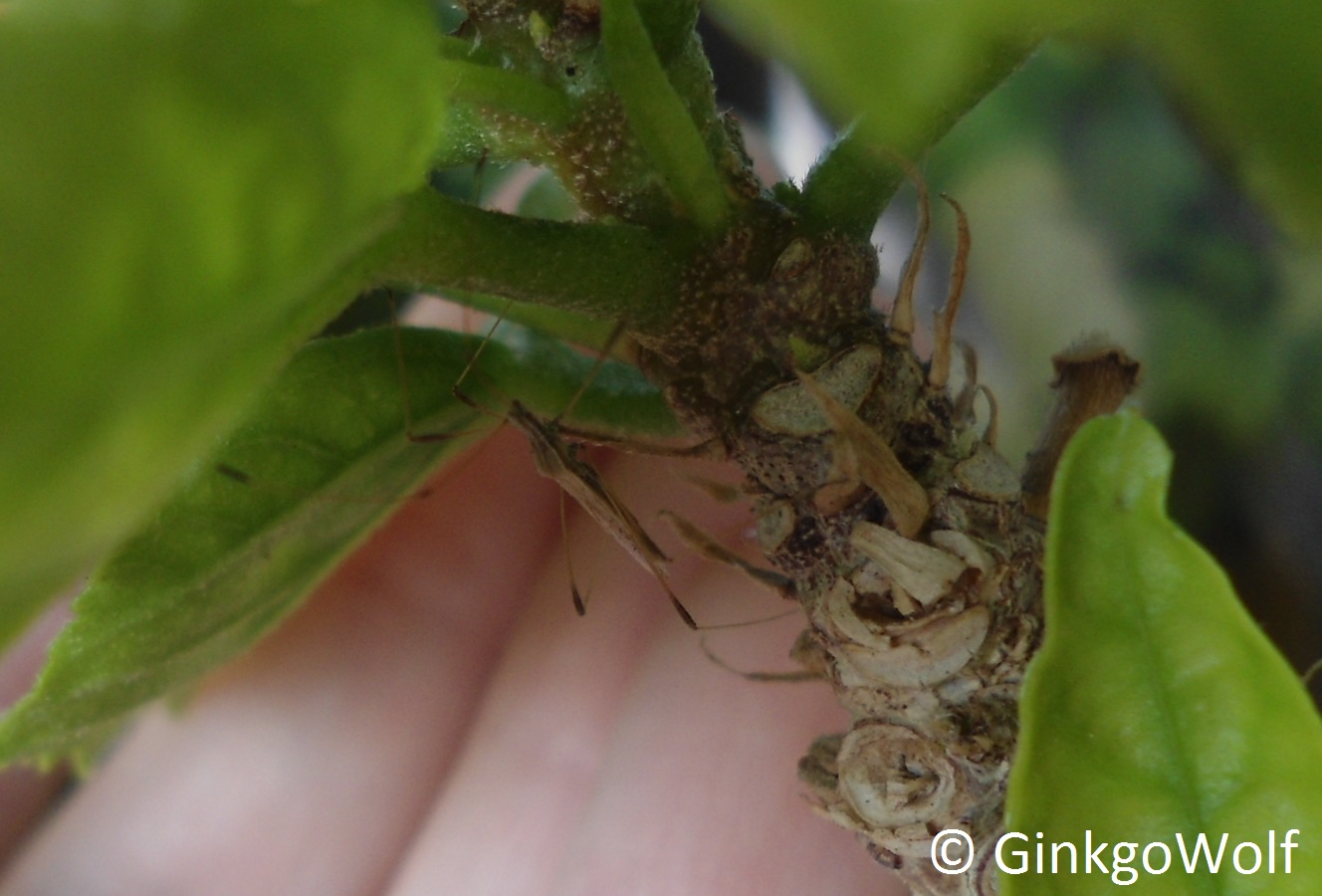 Seit dem Tag, als ich es fotografiert habe, habe ich das Tierchen nicht mehr gesehen. Hat sich also entweder wieder versteckt oder ist inzwischen wieder entflogen (hat ja schließlich Flügel).