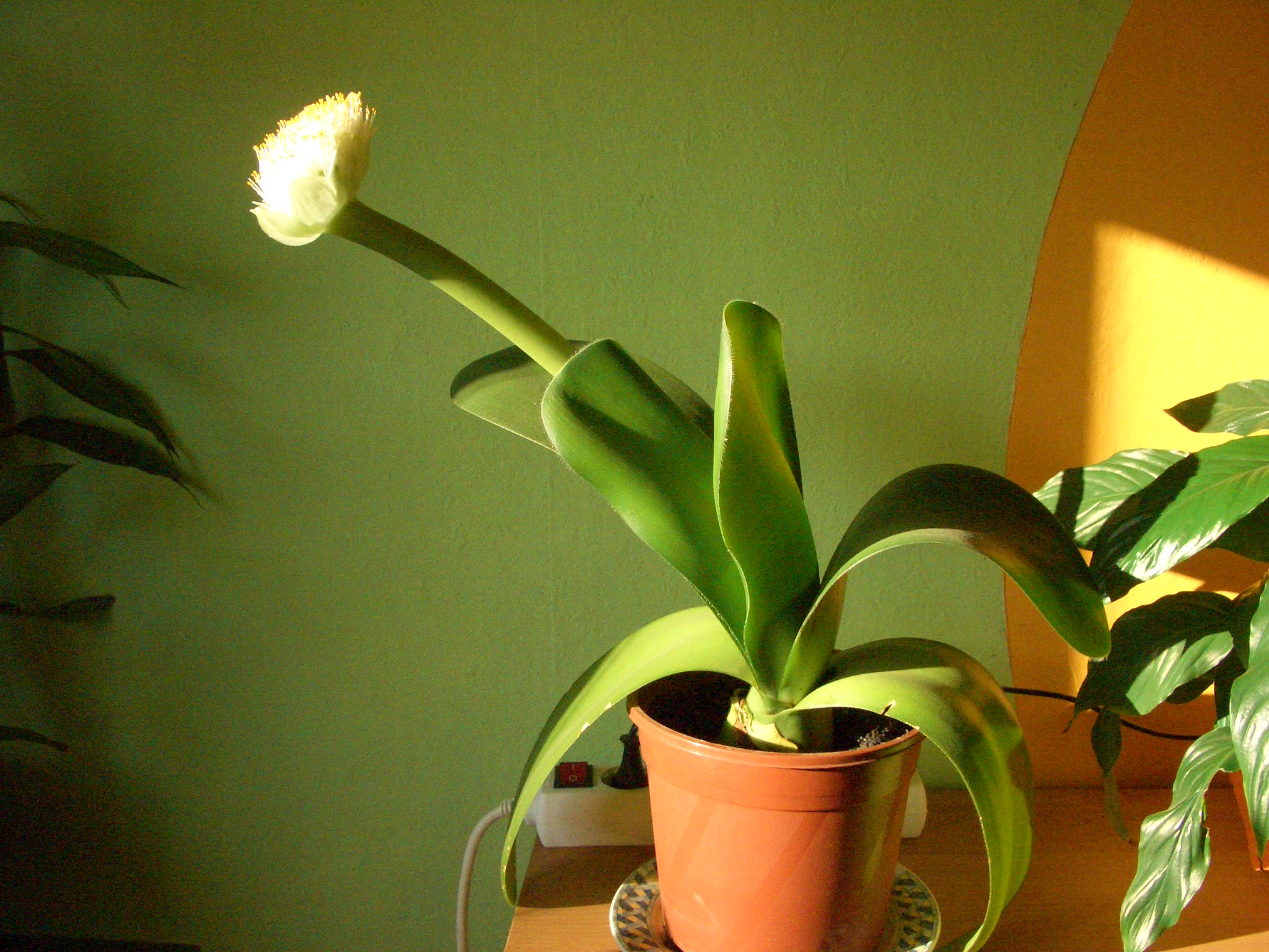 Das sieht aus wie Haemanthus albiflos. Guck mal hier: http://images.google.de/images?svnum=10 ... btnG=Suche
