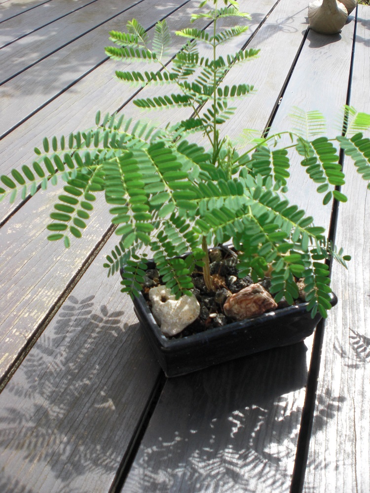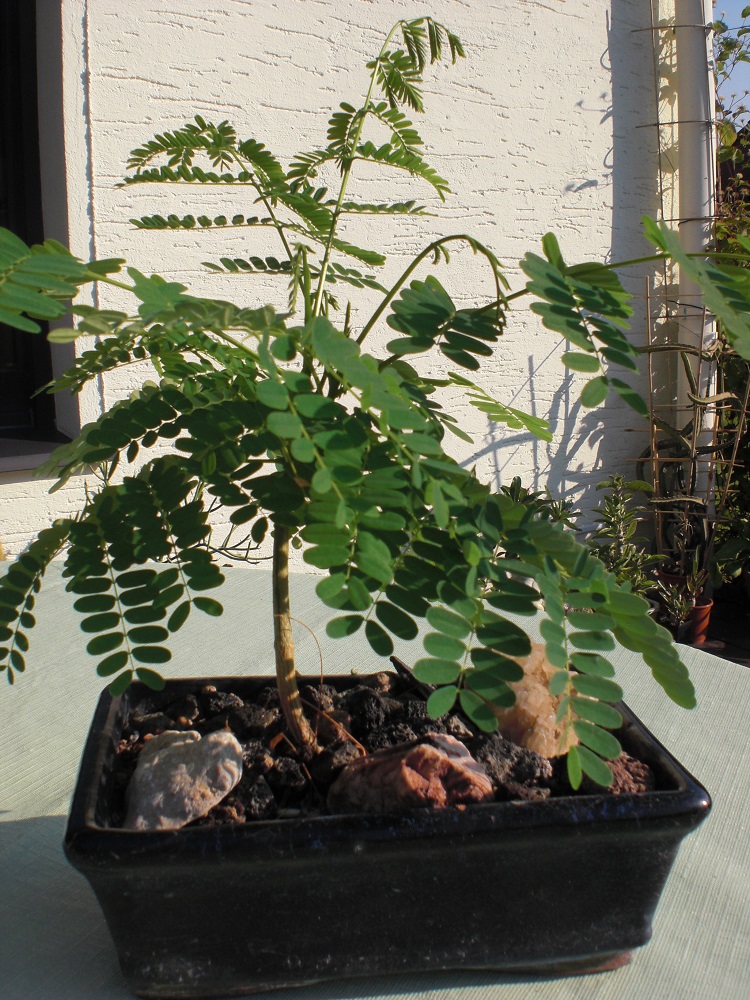 und sie wachsen gut. Bei Sonnenuntergang klappt das Bäumchen die Blätter zusammen. Eine Mimose ist das nicht!