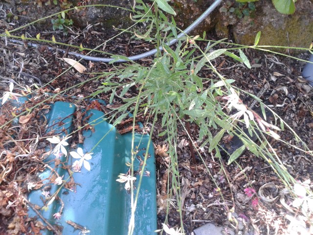 Habe hier in Mittel-Portugal die blühende Pflanze gefunden, die auf den - leider nicht besonders gut geratenen - Fotos zu sehen ist. Kennt jemand von Euch vielleicht diese Pflanze. Sie hat unten lanzettliche, ungesägte Blätter und lange Blütenausleger. Die Blüten mancher Pflanzen sind weiß, andere blühen in pink-rosa. Die Blüte hat 4 Blütenblätter. Die Pflanze wird inkl. Blütenausleger bis ca. 50cm hoch. Ich gieße sie jetzt im HOchsommer (30-35° im Schatten, trockene Luft) relativ viel.