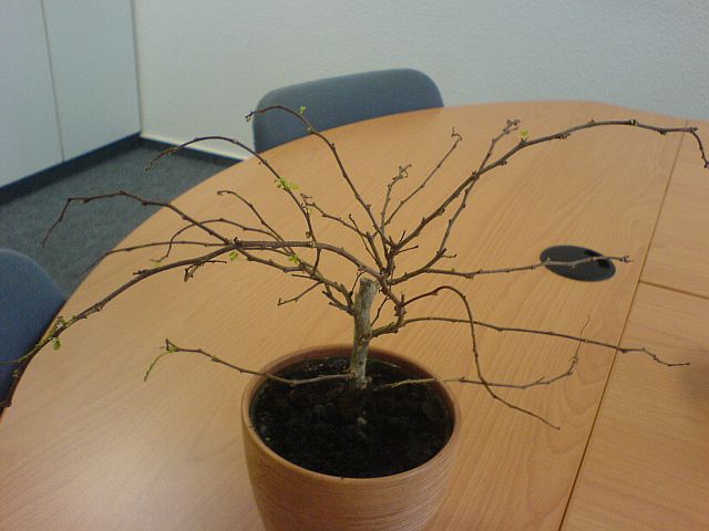 Sie hat (ich habs eben gegoogelt) unpaarig gefiederte Blätter, aber sehr kleine, ca so groß wir 3 Stecknadelköpfe. Die Blätter sind normalerweise, wenn sie mal welche hat satt dunkelgrün, und etwas speckig glänzend. Die Form der Pfalnze würde ich wie einen kleinen Baum beschreiben, mit seitlich auswachsenden Blättern. Habt ihr eine Idee, um was für eine Pflanze es sich handeln könnte?