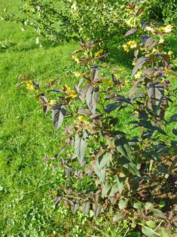 grünbraune Blätter, gelbe Blüten. Kennt jemand den Namen?