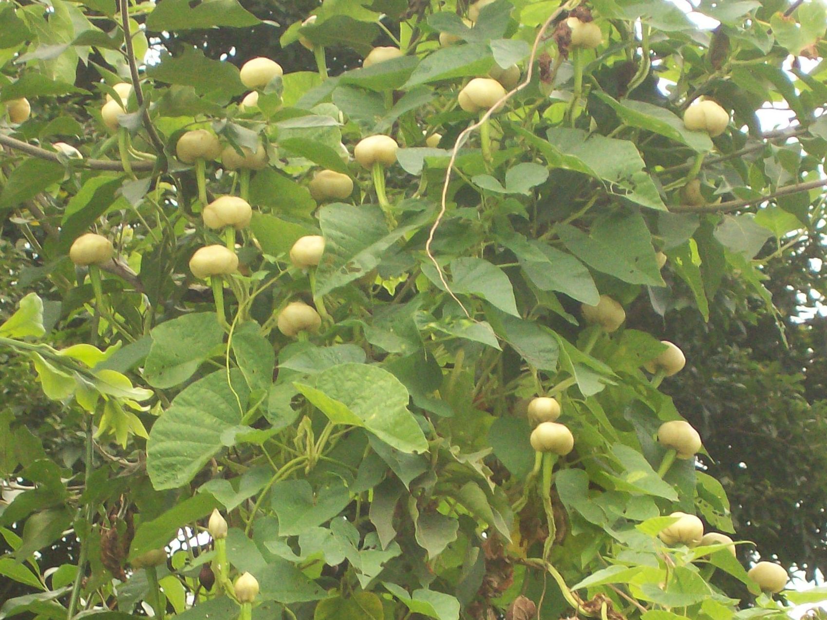Hier ist noch einmal ein Ranker, der mich an eine Holzrose errinnert. Konnte aber nicht nah ran und habe auch keine Blüten gesehen, ausser diese ziemlich grossen weiss-gelben Kugeln sind die Blüten. Nachher gibt’s wieder so eine braune Samenkapsel, konnte aber keine abreissen und habe keine Samen. Ist ein unwegsames gelende dort. Vielleicht kann mir ja trotzdem jemand helfen.