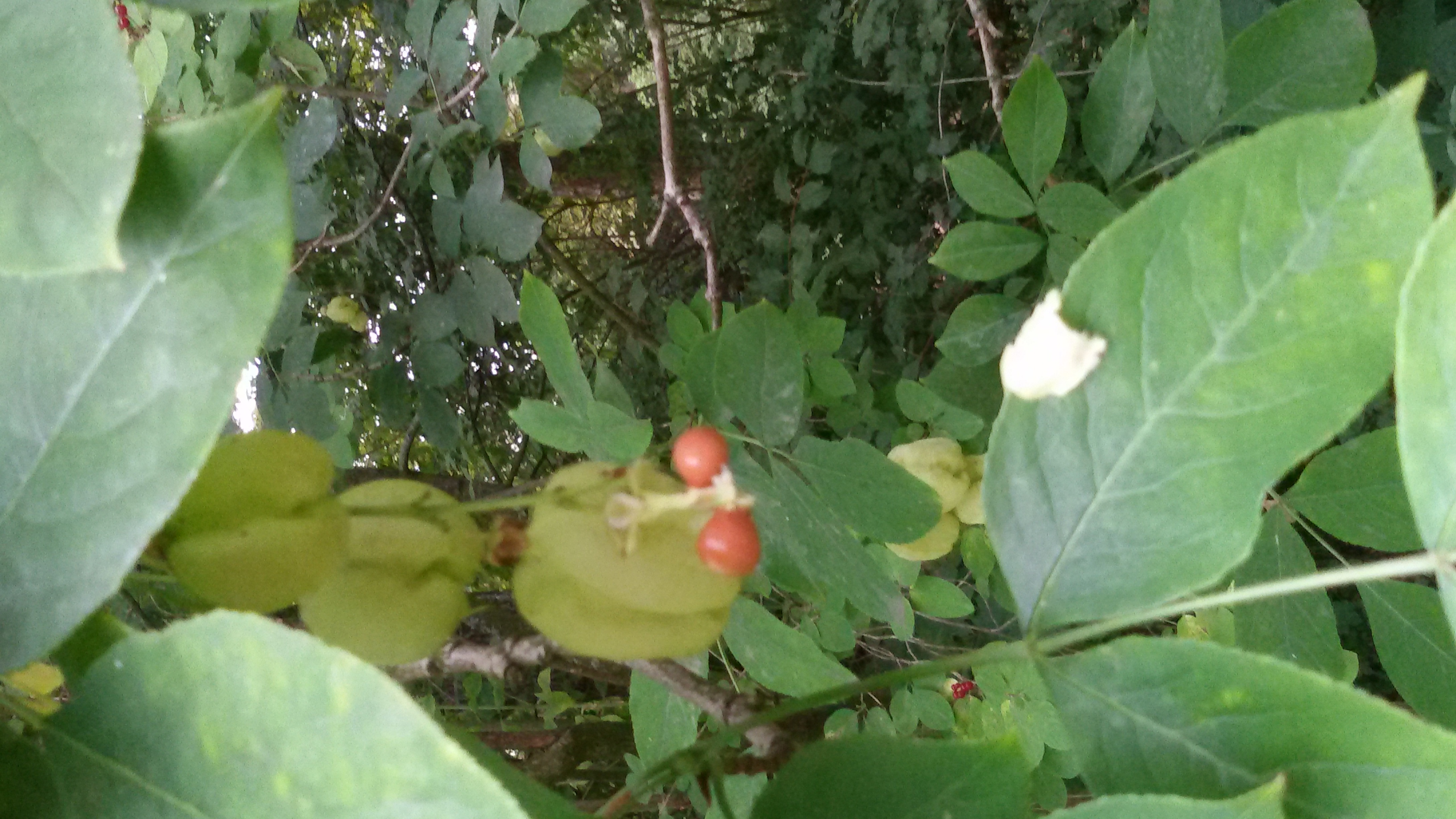 Eine Bekannte schickt mir aus Weimar 2 Fotos von einem etwa haselnussgroßen Strauch mit auffallenden Früchten (siehe Bild).
