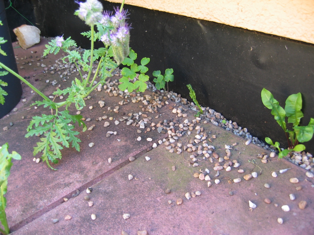 Meine Dachloggia im 3. Stock ist rundherum mit Kies eingefasst. Beim saubermachen hatte ich den Kies, der auf den Steinplatten rumlag, wieder schön in diese Rinne geschubst. Und zwei Wochen später sieht es bei mir wieder so aus.