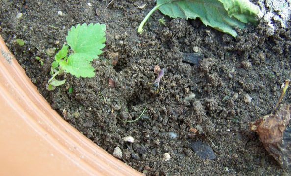 seit Freitag wurden plötzlich etliche Blätter unseres sonst so grünen Apfelbaums bzw. Himbeerstrauchs (beides Kübelfplanzen) braun und wir wussten nicht woran das liegen könnte bis ich eine Art Wespe gesehen habe, die Löcher in den Boden gräbt und Fliegen und andere kleine Insekten dort vergräbt. Als ich dann selber ein bisschen gegraben habe, bin ich auf weissliche Maden (ca. 4-5mm) gestossen. Die Frage ist jetzt nur: liegt das Problem wirklich an den Wespen(?) und falls ja was kann man tun. Ich habe gestern schon vorsichtshalber Brennesselsud angesetzt, den ich dann heute oder morgen in den Topf gießen will.