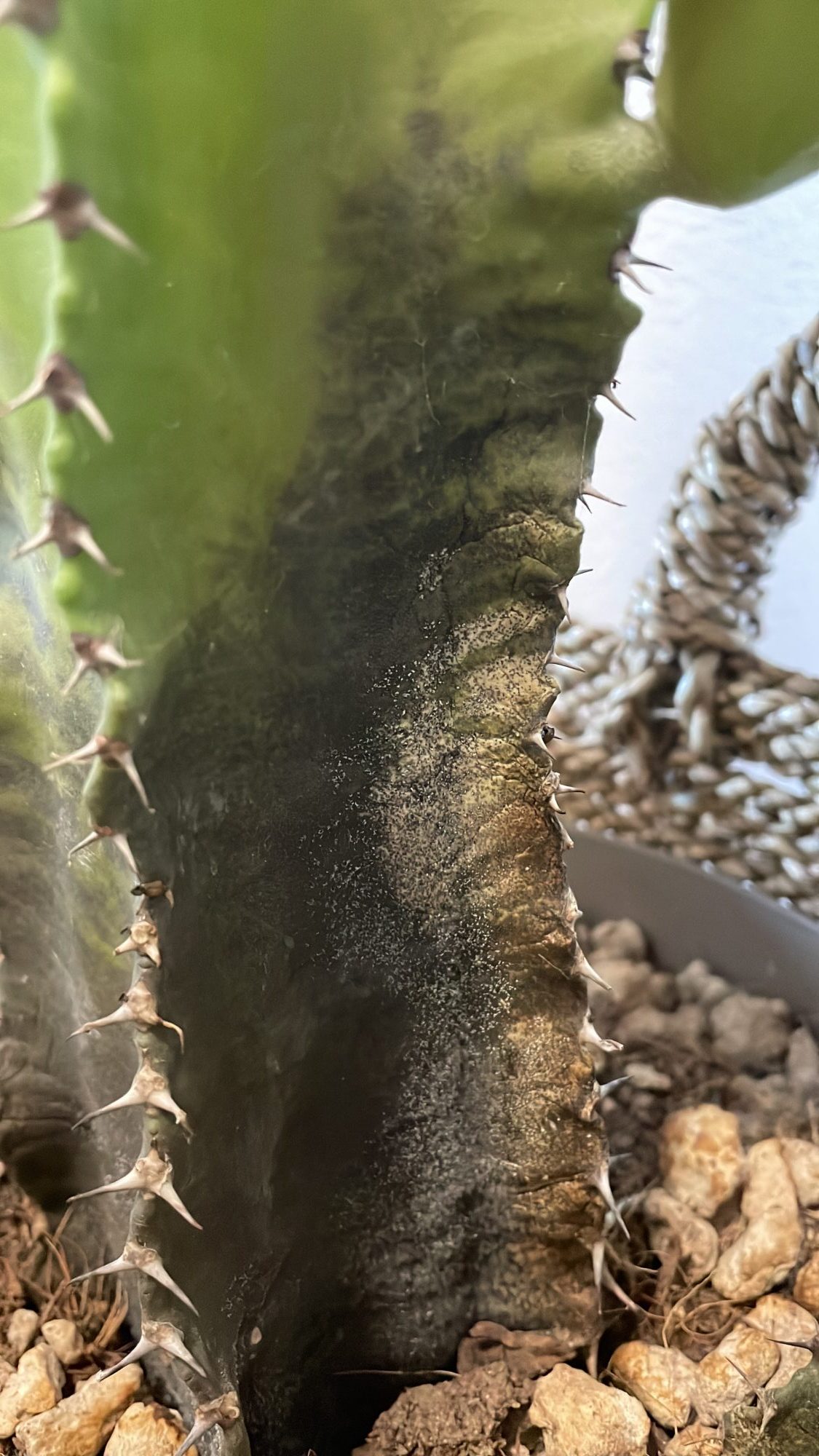 Nun wird schon der 2. Kaktus von unten her schwarz. Der eine ist schon total eingegangen. Von unten her ausgetrocknet. Nun beginnt auch der grosse. Ich gebe wenig Wasser. Zuwenig? Oder Vielleicht zu wenig Sonne? Das schwarze kann man abwischen. Dann nehm ich an es ist Schimmel?! Ist das weisse Mehltau? Wie kann ich ihn retten? Der andere ist innert 3 Tagen total eingegangen. Danke für eure Hilfe.