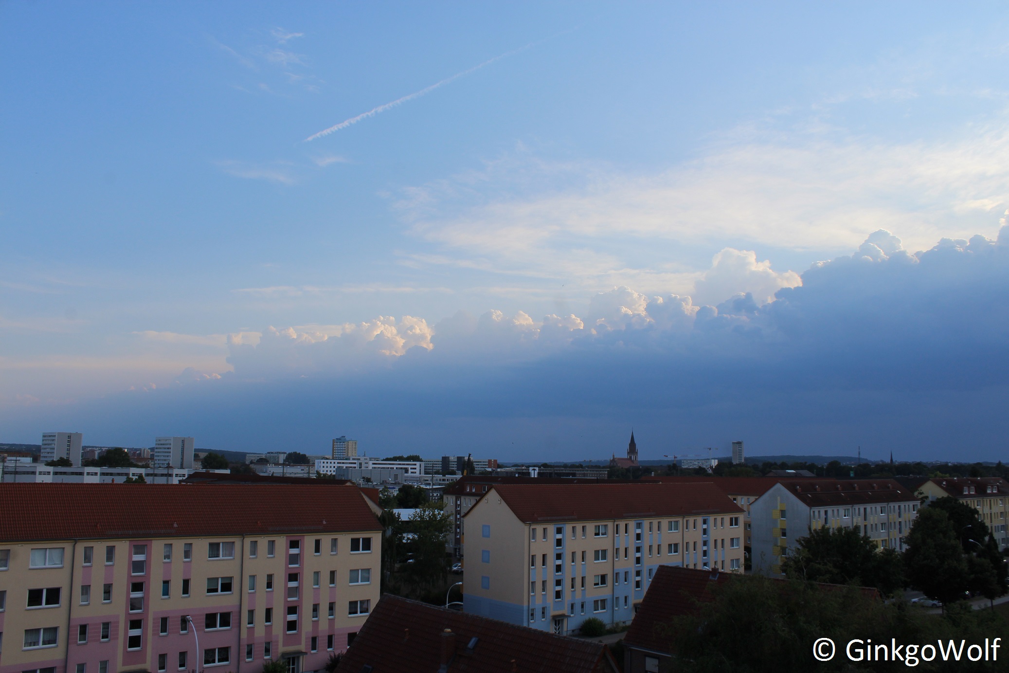 Nun kann ich sagen, es hat tatsächlich eine ansehnliche Menge Regen gegeben. Heute früh war ich noch bei meinen Eltern und dort hatte es um zwei Uhr morgens angefangen zu regnen (meinte Mutti und ich bin auch aus unerfindlichen Gründen mitten in der Nacht wach geworden vermutlich durch ein besonders lautes Gewitterrumpeln) und es regnete auch dann noch als ich zum Bahnhof musste (das war gegen sieben). Ich fand es schön und zwängte mich ohne Murren in meine Regenhose...