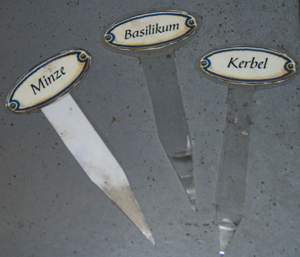 In der aktuellen Sendung von Gardeners' Question Time hat Bob Flowerdew einen sehr guten Vorschlag gemacht: man kann sich aus den Lamellen alter Metalljalousien Pflanzetiketten zurechtbasteln.