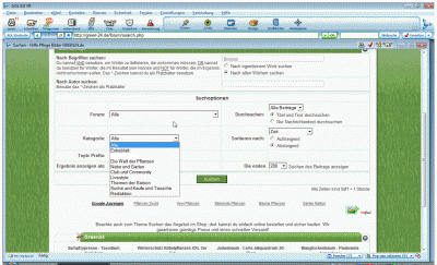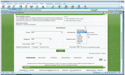 Auf die Worte "Forum durchsuchen" oben auf der Schiefertafel klicken, oder