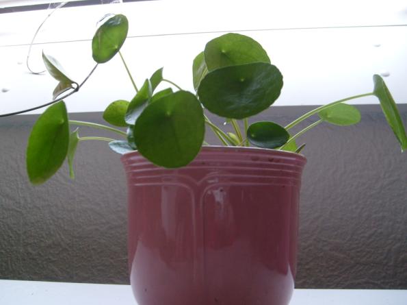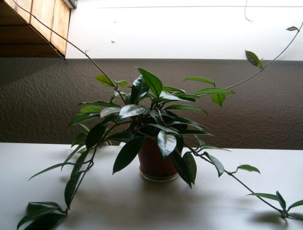 Die andere Pflanze hatte irgendwann nur noch zwei oder drei Blätter, jetzt kommen immer neue und es wachsen längliche "Arme" mit noch mehr Blätter in alle Richtungen. Vielleicht soll diese Pflanze eigentlich nach unten wachsen, ich weiß es nicht...