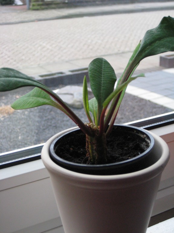 Ich habe sie als Ablegerchen bekommen. Die Schenkerin hatte aber auch keinen Schimmer, wie sie heißt. Der "Stamm" ist etwas sternförmig. An den Sternspitzen (Von oben betrachtet!) hat sie sowas wie einen Pelz oder ganz weiche Stacheln. Die Blätter sind sehr dünn, aber wie ich meine relativ groß.