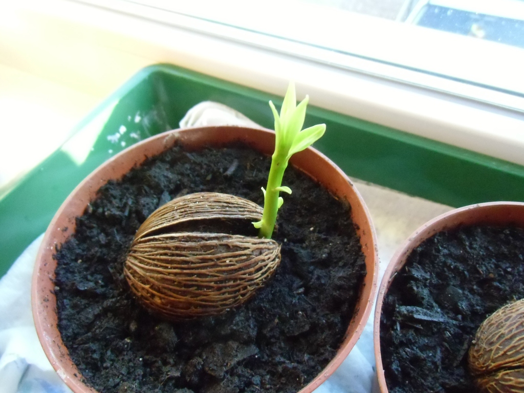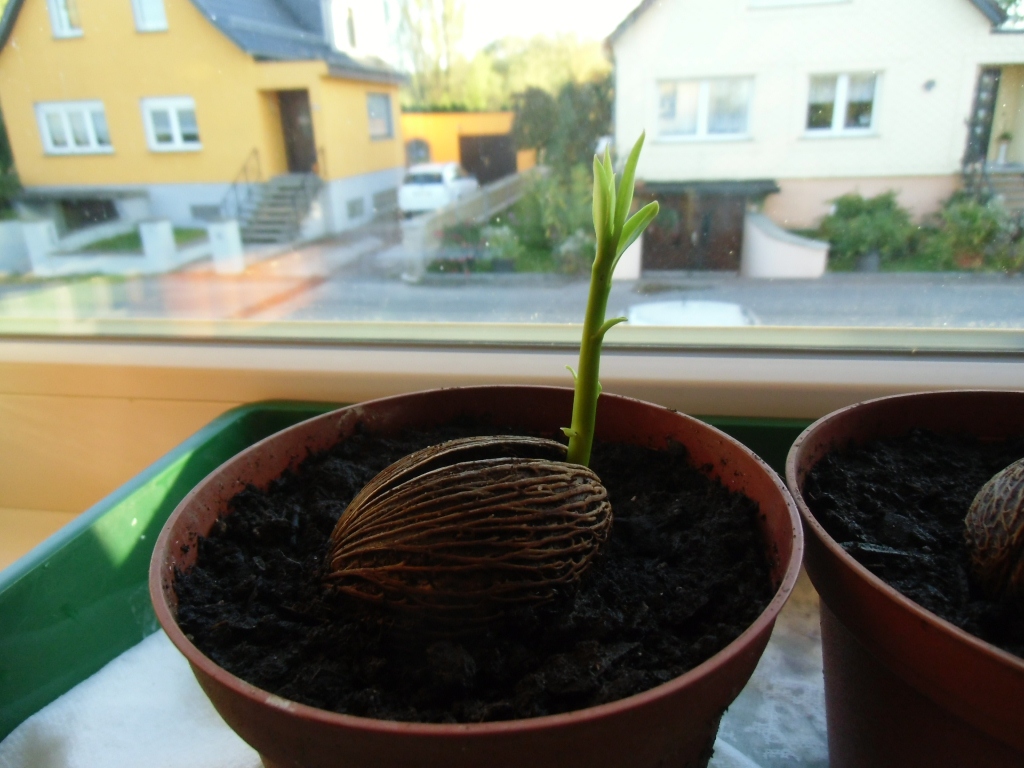 könnt Ihr mir weiterhelfen? Ich habe aus Thailand eine Art Nuss mitgenommen, wo ein ganz kleiner Sproß herausgeschaut hat. Mittlerweile ist daraus ein beachtliches Pflänzchen geworden. Leider weiß ich nicht, um was es sich handelt.