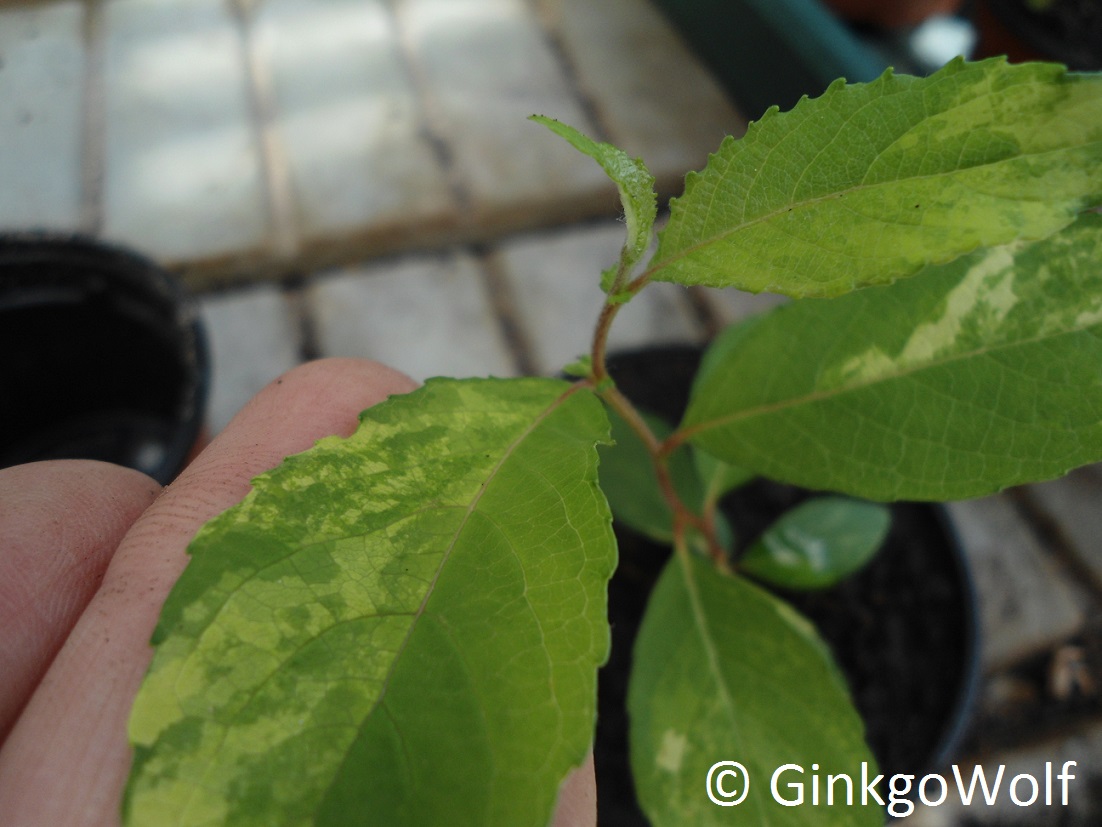Ich hab ein hübsches kleines Pflänzchen aufgegriffen. Es ist mir gleich aufgefallen, denn es ist nicht normal grün, sondern weiß-grün panaschiert. Ich hab es zunächst ein Weilchen beobachtet, um zu sehen, ob sich "die Farbe auswächst", doch als das nicht der Fall war, habe ich beschlossen, das Pflänzchen zu adoptieren. Nicht, dass irgendjemand meint, dass es "Kompost" wär. Das Pflänzchen ist spontan in einem unserer Töpfe aufgegangen.