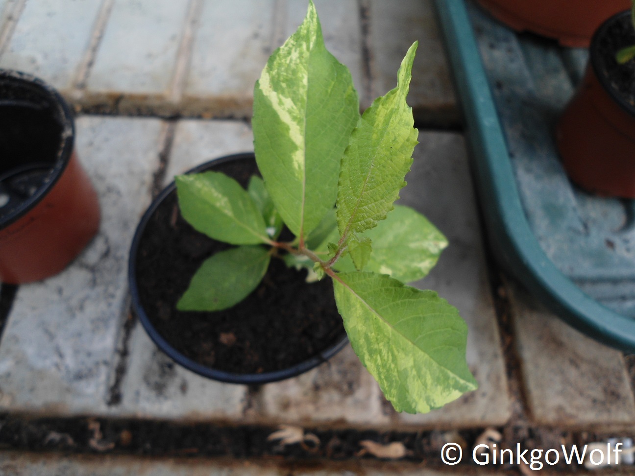 Ich hab ein hübsches kleines Pflänzchen aufgegriffen. Es ist mir gleich aufgefallen, denn es ist nicht normal grün, sondern weiß-grün panaschiert. Ich hab es zunächst ein Weilchen beobachtet, um zu sehen, ob sich "die Farbe auswächst", doch als das nicht der Fall war, habe ich beschlossen, das Pflänzchen zu adoptieren. Nicht, dass irgendjemand meint, dass es "Kompost" wär. Das Pflänzchen ist spontan in einem unserer Töpfe aufgegangen.