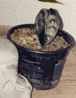 Da ist noch mehr schief gelaufen … Kannst du bitte Fotos bei gutem Tageslicht machen, sodass Farben erkennbar sind, und vielleicht auch aus mehr als einer Perspektive? Ich erkenne da nämlich keine Pflanze, sondern ein in Substrat gestecktes, schwarzes Blatt undefinierbarar Form.